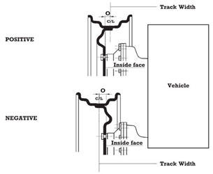 همه چرخها، افست (O) مشخصی دارند که نه تنها نشانگر فضای لازم برای غلتک ترمز است بلکه پهنای عاج، خصوصیات عملکرد و بار بلبرینگ را نیز مشخص میکند. در اتصالات دوگانه، بر فاصله گذاری نیز تأثیر میگذارد.