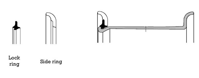 اساساً، چهار نوع رینگ اصلی برای لاستیکهای راهسازی در بازار موجود است (اصولاً همه این رینگها به شکل مخروطی̊ 5 هستند):