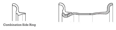 رینگهای متقارن و نامتقارن (̎ 13، ̎ 14، ̎ 17 و ...) که در لاستیکهای استاندارد و سبک شاسی کوتاه کاربرد دارند.
